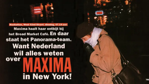 Eén foto is al genoeg, dan gaan we weer weg. En misschien wil ze wat zeggen over haar relatie met Willem-Alexander. Maar de straffe protocollaire training van de schoonfamilie heeft zijn uitwerking niet gemist: Maxima weigert ook maar één woord te wisselen met ons, en stapt met driftige passen richting Deutsche Bank. De Panorama-fotograaf doet zijn werk en drukt af. Maxima lijkt zich overigens niet te ergeren aan het tafereel, er kan zelfs een glimlach af.” Gelukkig hebben we de foto nog...