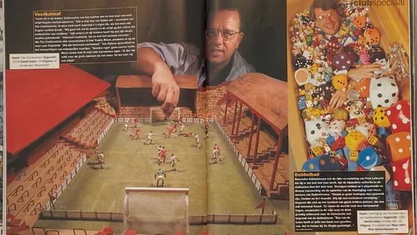 Nu hadden we de clubs bij wie wij langs konden gaan gelukkig voor het uitkiezen, dus we bedankten Castigatio vriendelijk voor de uitnodiging en togen in plaats van naar hun mepkelder naar het café waar amateurbierbrouwersvereniging De Roerstok uit Tilburg zich aan de bar had genageld, naar solexclub ’t Rolletje in Amersfoort en natuurlijk ook naar The Continentals, een voetbalmaffe vereniging voor liefhebbers van Engels voetbal (foto). Secretaris Han overtrof het predikaat voetbalmaf: vijf winters en vijf zomers had hij in zijn eentje een Engels voetbalstadion nagebouwd, ‘allemaal handwerk tot en met het kleinste steentje’: “Licht uit in de kamer, lichtmasten van het stadion aan en dan naar een wedstrijd Engels voetbal luisteren.” In een tijd uiteraard dat je nog niet elke Premier League-wedstrijd op tv kon zien en Engels voetbal vooral bestond uit alcoholistische dokwerkers die niet verder kwamen dan het principe lange halen, snel thuis. Voetbalromantiek ten top, met The Continentals voorop.