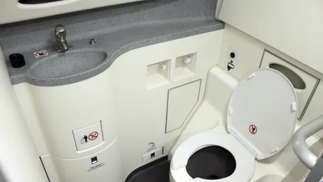 De man kon door ernstig overgewicht en een blessure aan zijn hand niet zelfstandig naar het toilet. Daarom vroeg hij het cabinepersoneel om assistentie. Hij werd naar het Business Class-toilet gebracht omdat het economy-toilet te klein was.