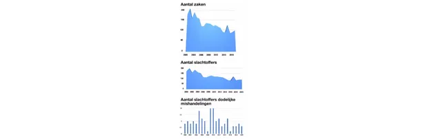 Het aantal slachtoffers is sinds de eeuwwisseling gehalveerd, maar lijkt niet onder de honderd te willen zakken, alsof dat getal een natuurlijke ondergrens is. Eénmaal – in 2018 – zakte het aantal zaken onder de honderd, maar door enkele meervoudige moorden kwam het aantal slachtoffers uit op 105. Dat was wel het laagste aantal deze eeuw.