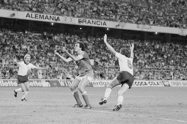 Een magisch vierkant met Luis Fernández, Jean Tigana, Alain Giresse en Platini als dirigent van het orkest. Frankrijk is hard op weg om het WK van 1982 te winnen, maar dan is daar de beroemde aanslag van Toni Schumacher, de Duitse keeper die Patrick Battiston zowat onthoofdt. De Nederlandse scheidsrechter Charles Corver ontgaat de overtreding. Frankrijk verspeelt in de verlenging een 3-1-voorsprong en in de strafschoppenreeks groeit uitgerekend Schumacher uit tot de grote held. Frankrijk druipt af. “Ik had nog nooit zoveel drama gezien op een voetbalveld, zoiets zie je normaal gesproken alleen in een theater of film. Het was een heel grote teleurstelling,” zegt Platini jaren later.