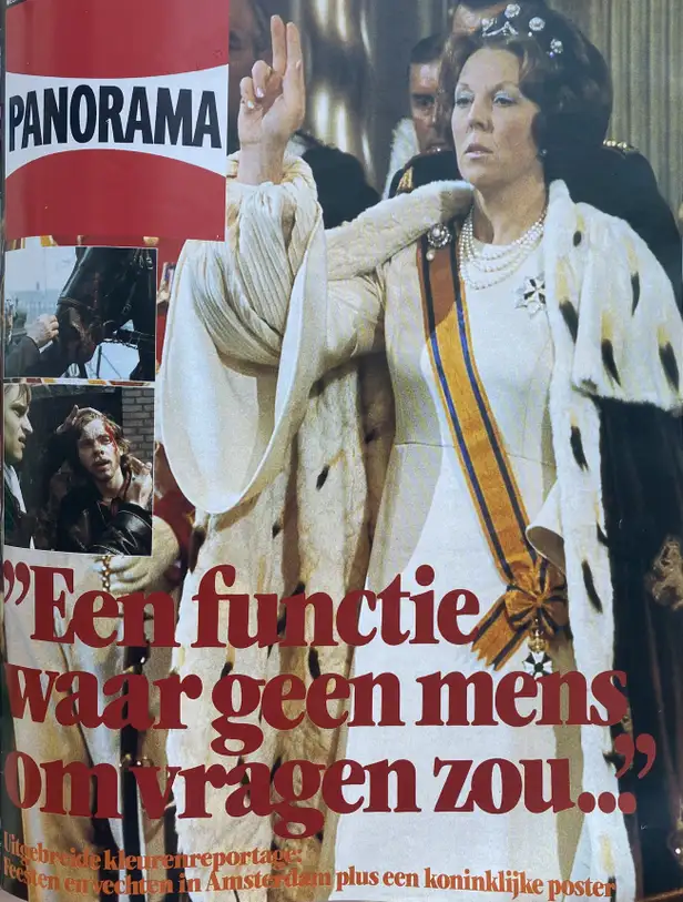 Hoe anders verliep die 30ste april in 1980. Wisten wij veel dat Amsterdam in een oorlogsgebied zou veranderen door die kroningsrellen: verslag daarvan konden we pas twee weken later doen. Toen schreven wij: “Amsterdam leek gewillig: de tientallen bizar uitgedoste Oranjeklanten uit de provincie hadden op de Dam de dag van hun leven. Een normale Koninginnedag dus. Maar plotseling was de hoofdstad weer die lastige stad en werd het revolutionaire pitje hooggedraaid. Nauwelijks was de nieuwe koningin wit als een doek de kerk ingeschreden, of de eerste klappen vielen. Binnen een uur was de binnenstad in oorlog. Auto’s en huizen vlogen in brand, relschoppers en Mobiele Eenheid stonden elkaar naar het leven, gewonden werden afgevoerd. De schooljeugd met de vlaggetjes was iedereen toen al lang vergeten.”