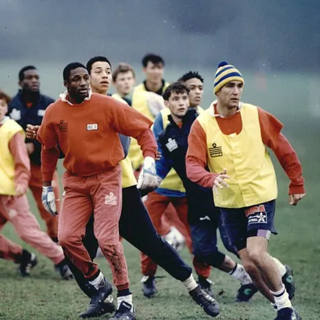 Schedelfractuur Het is een verre van originele tactiek, maar toch is Bassett een revolutionair. Anno 2022 hebben coaches de mond vol over expected goals, high intensity-sprints en andere verschrikkelijke informatie die wordt bestudeerd op de laptop, maar Bassett werkt al in 1982 met data. “We moesten per wedstrijd minimaal achttien keer op goal schieten, twaalf corners nemen en twaalf keer naar voren ingooien.” De 18-12-12-formule is het recept voor de stijgende lijn van Wimbledon. Vier jaar later is daar de entree op het hoogste niveau. Om ook daar te overleven zijn er wat fysieke elementen toegevoegd aan de nagestreefde cijfercombinatie. Daarnaast is manager Bassett inmiddels vervangen door Bobby Gould. Voor versterkingen zoekt de club niet naar elegante dribbelaars, maar krachtpatsers als Vinnie Jones en John Fashanu. Die laatste is een donkere, fysiek ijzersterke spits. Hij ziet zichzelf als leider van de boevenbende. Zijn bovenarmen zijn minstens even doeltreffend als zijn wreeftrap. Fashanu heeft voor niets of niemand respect, maar is wél onder de indruk van Jones. “Ik dacht dat ik een angry man was, maar hij...” Jones, die u ook kunt kennen als acteur, krijgt al snel de bijnaam The Butcher.