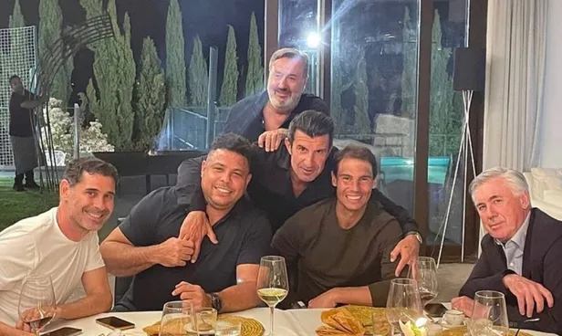 Ik zal wel te veel films hebben gekeken, over de meimaand gesproken, maar ik zag laatst een foto die zomaar een scène uit een maffiafilm had kunnen zijn. Aan tafel zat Ancelotti, die duidelijk de patron van het stel was, samen met Real-iconen Fernando Hierro, Luis Figo, de Braziliaanse Ronaldo die eruitzag alsof hij die migrerende gnoes een voor een had opgegeten, en niemand minder dan tennislegende Rafael Nadal, de hitman en misschien wel grootste Real Madrid-fan van allemaal. Samen vierden ze het 35ste kampioenschap van Real, maar als ze net een duizelingwekkende cokedeal hadden gesloten of 26 tegenstanders uit de weg hadden geruimd, had ik het ook geloofd. Alleen Mino Raiola ontbrak nog op de foto, maar we weten allemaal dat dat ook niet meer kan.
