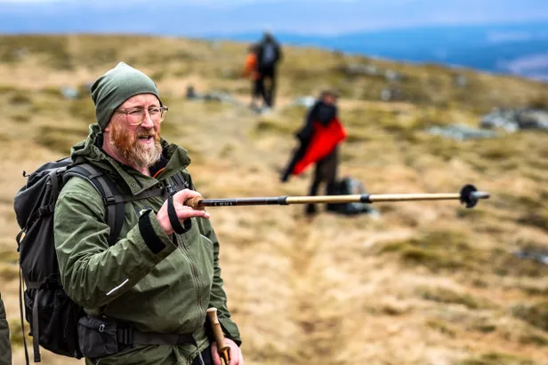 Teguh vindt het een beetje spannend, dat niet-geverifieerde water. De rest van de groep volgt Siegurds advies blindelings op en vult gretig de plastic flesjes met het natuurlijke bergvocht. “Hij zal wel weten waar hij het over heeft,” probeer ik Teguh te overtuigen. Aan de andere kant van de Noordzee geniet Siegurd een reputatie van een van Nederlands’ meest bewierookte bushcrafters. De meeste wandelaars van vandaag woonden al eens een workshop bij van de professionele bosjesman. Vuur maken, hout hakken, messen slijpen of eetbare planten opspeuren - kortom alle vaardigheden die mannen scheiden van jongens - zijn voor Siegurd zowel passie als verdienmodel. Geef de man een pincet en een half rolletje plakband en hij zal zijn weg moeiteloos terugvinden vanuit de diepste krochten van de Amazone. Een klein flesje water vullen op zijn advies durf ik wel aan.