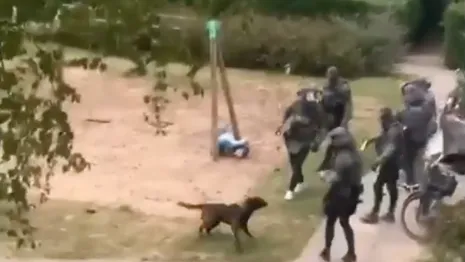 De hond gedroeg zich erg dreigend en agressief richting de agenten die ter plekke waren. Een lid van het team zag zich daarop genoodzaakt om de hond te taseren. De hond was tijdelijk uitgeschakeld en onder controle gebracht. Tijdens het taseren liep de hond geen letsel op en hij is door de dierenambulance overgebracht naar een dierenopvang. De man is door een ambulancemedewerker nagekeken nadat hij de ruit van het portiek had ingeslagen. Daarna is hij overgebracht naar het politiebureau.