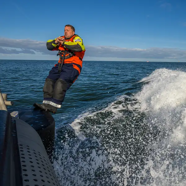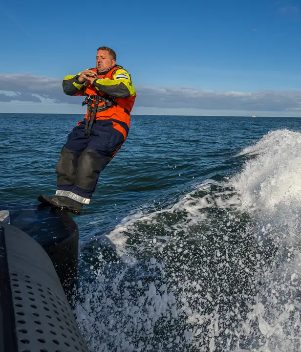 Dat lag veel meer bij de zorg voor anderen, bij het redden van mensen en dieren op het water. Sinds vier jaar is hij vrijwilliger bij de KNRM, naast zijn werk bij een verpakkingsbedrijf aan de overkant van de reddingsmaatschappij. De KNRM past hem als een jas: