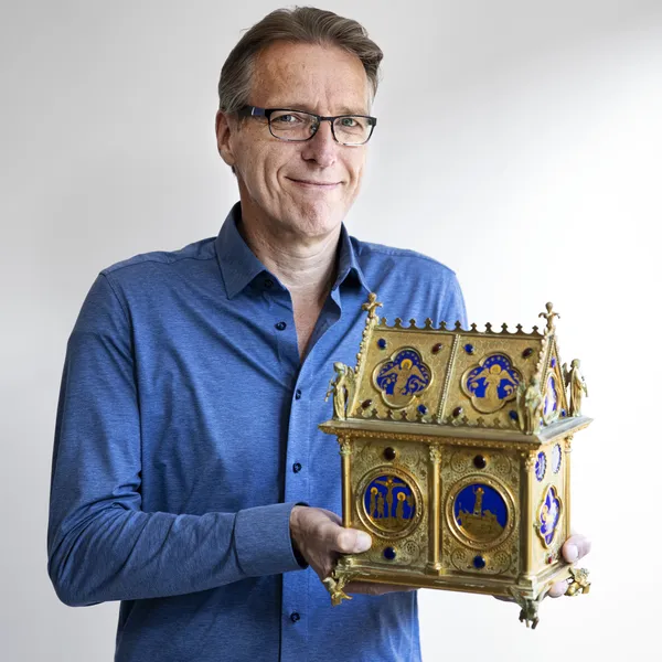Met beide handen tilt Brand de zware doos op en brengt hij hem mee naar binnen. Daar pakt hij hem voorzichtig uit. Hij kan zijn ogen niet geloven. In zijn handen heeft hij opeens het eeuwenoude relikwie dat een maand geleden uit de kathedraal van Fécamp in Frankrijk is gestolen. Een prachtig gouden kistje met binnenin twee metalen buisjes, waarvan katholieken geloven dat er iets héél bijzonders in zit: het bloed van Jezus. Bloed dat na de kruisiging zou zijn opgevangen en sindsdien zou zijn bewaard. Met dank aan zijn onbekende contactpersoon krijgt Brand het religieuze kunstwerk nu zomaar in zijn schoot geworpen. Aan De Telegraaf legt hij uit hoe dat in vredesnaam kan: “De dief had het relikwie doorgegeven aan een heler, die in paniek raakte toen hij besefte wat hij in handen had. Gelovig of niet, heb je een voorwerp als dit illegaal in huis, dan roep je een vloek over jezelf af, dat vreest zelfs de hardste crimineel nog. De heler dumpte het dus bij de mailer, en deze wilde het retourneren, maar was bang voor camera’s bij de kerk. Daarom benaderde hij – of zij – mij als tussenpersoon. Enige voorwaarde was dat ik de politie niet zou inschakelen, anders zou het vernietigd worden. Binnen een week zou er drie keer kort achter elkaar bij me worden aangebeld, en dan stond het op mijn stoep.” En dat is dus gebeurd. Kijk, dat noemen we pas een godsgeschenk.