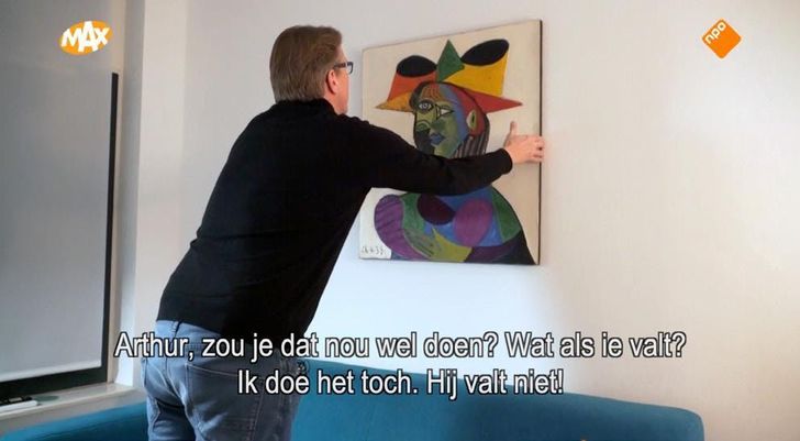 “Ik heb de Picasso bij mij aan de muur gehangen. Volgens mij zou Picasso dat ook wel leuk hebben gevonden, dat het schilderij een nachtje onverzekerd aan mijn muur hing. Daarmee was mijn huis voor even het meest waardevolle van heel Amsterdam.”