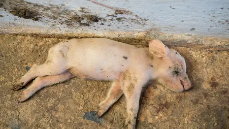 De biggen zijn volgens iemand van de Vegan Strike Group gestolen uit tonnen langs de weg. "Het is een boodschap naar de maatschappij", aldus de veganisten.