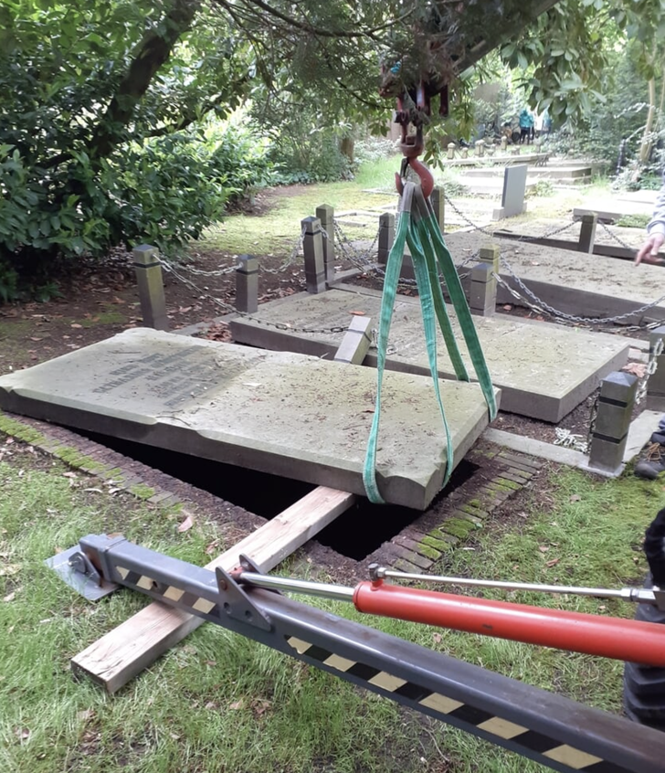 Op de oude begraafplaats aan de Berkenweg bleek iemand het graf van een zekere Catharina Geertruid Hissink te hebben geopend. Nou ja, ‘iemand’, de loodzware deksteen kon nooit door één persoon zijn verschoven. Er was een opening van ongeveer een halve meter ontstaan en alleen met een hijskraan kon de steen later weer op z’n plaats worden getild. De grafschennis werd ontdekt door een plantsoenwerker, die op zijn beurt met schrik in de benen de gemeente inlichtte. In Baarn vraagt men zich nu af: waarom vond iemand het nodig om het graf van de op 14 maart 1906 overleden Catharina te openen?