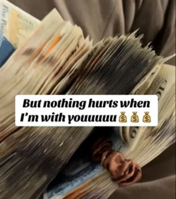 Ook deelde ze een foto van een flinke stapel bankbiljetten, bijeengehouden met een elastiekje. Daarbij schreef ze: "Niets doet pijn als ik bij jou ben". Deze posts zullen haar niet helpen in het lopende onderzoek.