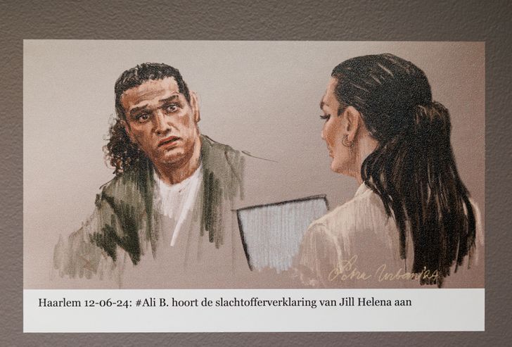 Ook valt het intussen beruchte gelaat van Jos B. op, de veroordeelde moordenaar van Nicky Verstappen, net als zijn voormalige celmaat en de man die op de tekening van Petra naast hem zit, Bekir E. “Een boef die getuige is in de zaak van een boef,” zegt ze. “Dit is die gast, Bekir E., die dat meisje in Rotterdam, Hümeyra, zou hebben vermoord en in de gevangenis in gesprek raakte met Jos en vervolgens aangaf dat Jos aan hem zou hebben verteld op welke wijze Nicky was overleden.” Volgens Bekir E. had Jos hem verteld dat hij Nicky niet wilde vermoorden, maar zijn hand te lang op zijn mond hield.