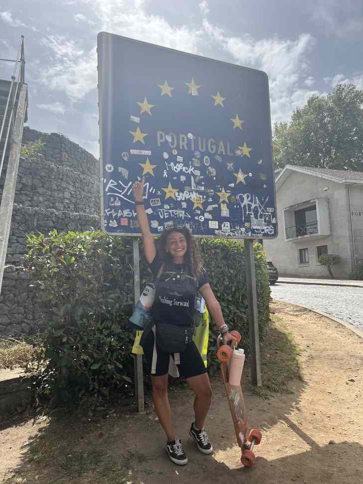 En dus werd de bestemming voor haar uitdaging Portugal, het land van de fado-muziek en Cristiano Ronaldo. “Eigenlijk wilde ik naar Zuid-Frankrijk skaten, omdat ik daar wilde gaan golfsurfen. Ik ben ooit op surfkamp in Biscarrosse geweest. Ik wist dus dat je daar heel gaaf kunt surfen. Maar ineens dacht ik: dan eindig ik mijn trip tussen Fransen en ik vind Fransen helemaal niet leuk, eigenlijk. Ik dacht: weet je wat, ik ga naar Portugal. Maar ik had er helemaal niet over nagedacht dat je dan eerst toch helemaal door Frankrijk moest. En wat voor mij ook wel schrikken was: Zuid-Frankrijk is ongeveer 1.200 kilometer, Portugal bleek dubbel zo ver.”