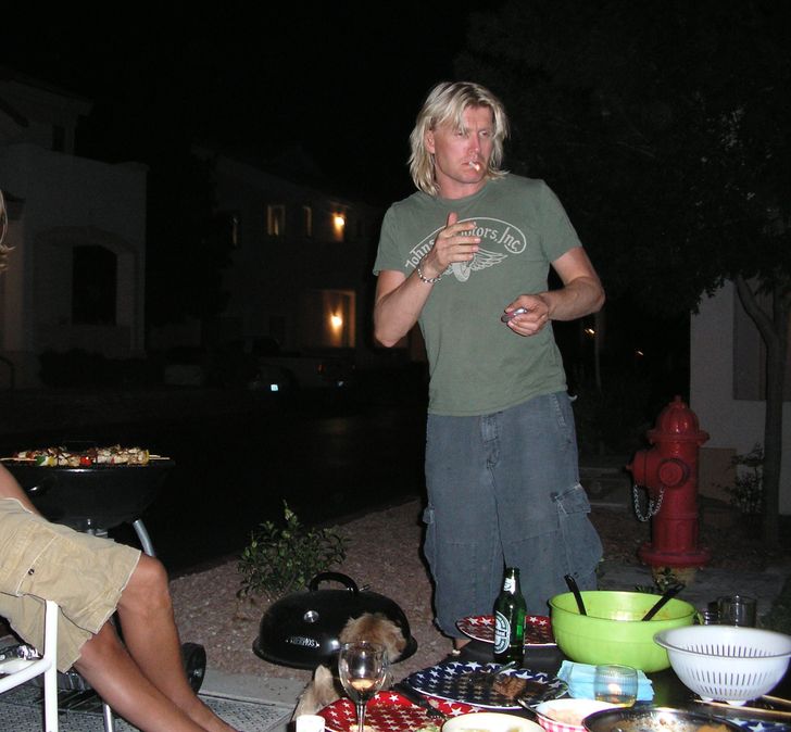 Ik maakte achteloos wat foto’s, maar dat viel gelukkig niet op. Ik was een gast van Hans, dus het was oké. De Baywatch-ster huppelde nog steeds rond in haar zilveren glitterbadpak uit de show en was allervriendelijkst. Ik vond haar veel kleiner en menselijker dan ik dacht. Ook botste ik vol tegen Mötley Crüe-drummer Tommy Lee aan, de ex van Pamela, je weet wel: die van het sekstape-schandaal en de man met de losse handjes.