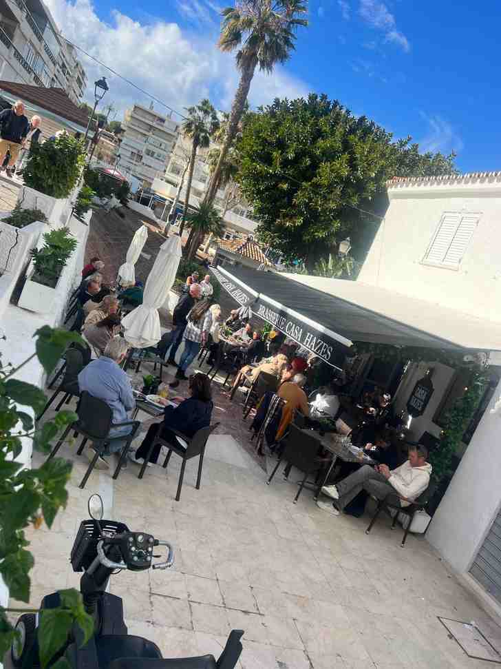 Aan diezelfde boulevard ligt Brasserie Casa Hazes. De naam zegt genoeg. Wie binnenstapt, kan niet heen om het standbeeld van André, zijn gouden platen aan de muur en de Hazes-meezingers die met vaste regelmaat door de zaak galmen. De aantrekkingskracht van de zaak komt echter ook van weduwe Rachel. Zodra zij binnenloopt, bewegen hoofden met haar mee. Een glimlach van herkenning, een begroeting, soms een selfie. Juicechannel-koningin Yvonne Coldeweijer noemde de immer zongebruinde Rachel ooit een ‘gecremeerde kroket’, maar intussen heeft ze met haar Casa Hazes wel een vaste plek veroverd in de Zuid-Spaanse badplaats. Er is aanloop genoeg.