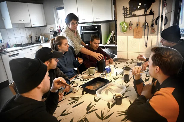 Koffie en stroopwafels bij moeder aan de keukentafel, want van klussen krijg je stevige trek.