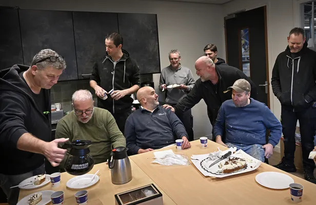 Het gerstenat blijft nog even in de koelkast staan, de mannen houden het voor nu bij koffie en een punt vlaai.