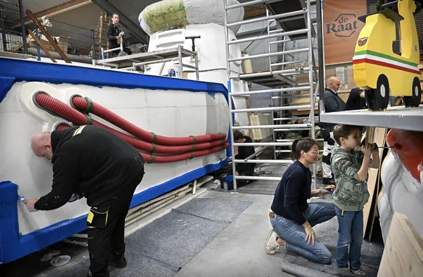 De talloze verenigingen in Brabant en Limburg staan in loodsen, stallen en schuren al weken te timmeren aan hun praalwagens voor de komende optochten. Fotograaf Marcel van den Bergh ging er bij een aantal langs om de feeststemming te peilen.