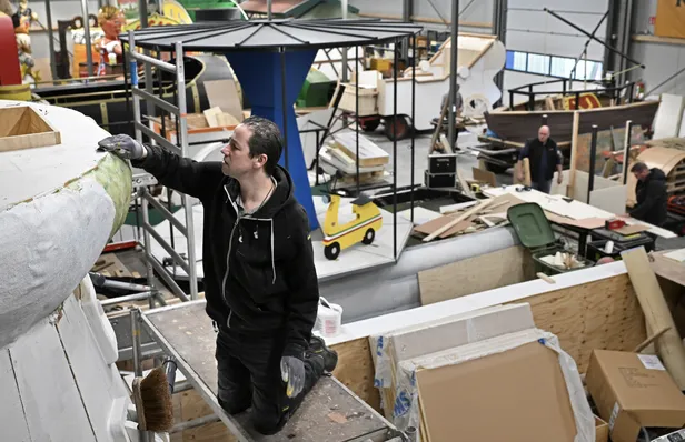 Het is net The Masked Singer, maar dan met praalwagens. Wat er onder het zeil zit, blijft nog even geheim, maar duidelijk is wel dat de schuur nu al te klein is.