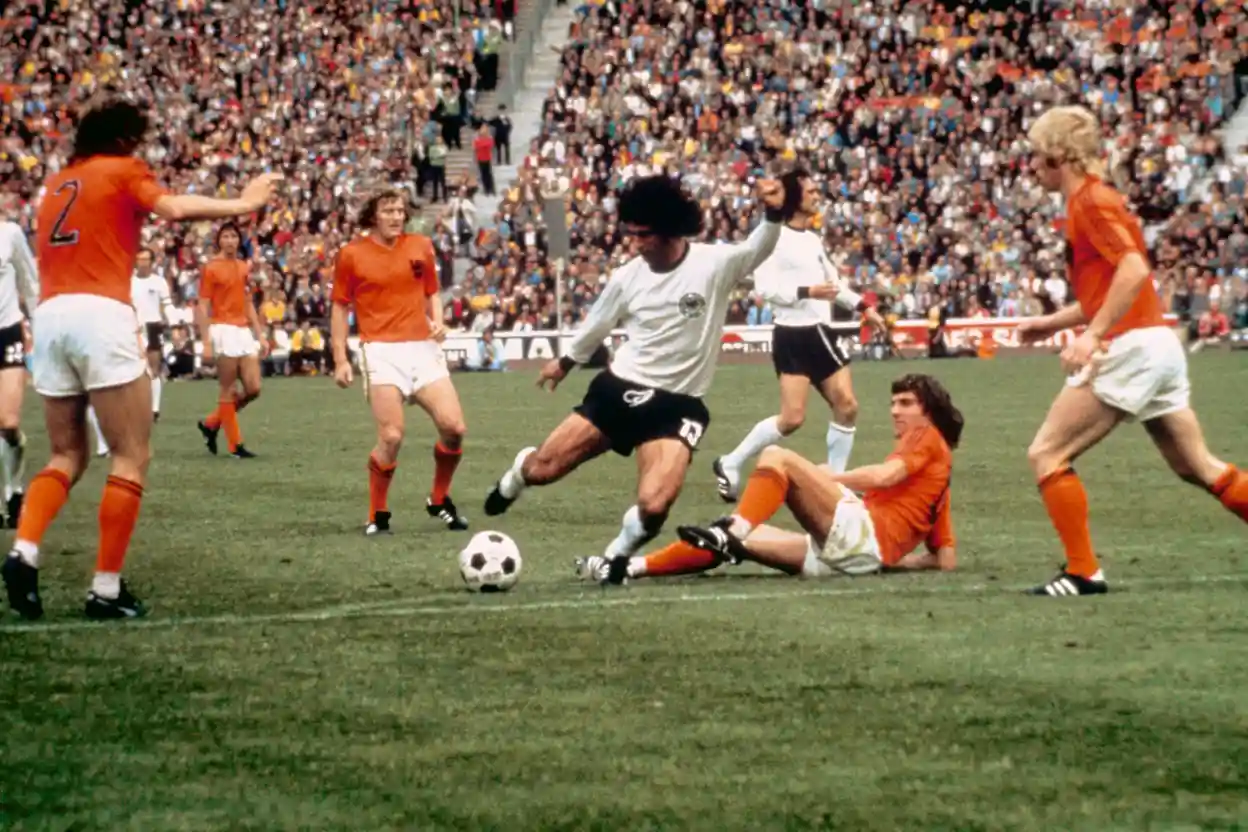 7 juli 1974. Nederland zou wel even wereldkampioen worden. Het had de finale bereikt met slechts één doelpunt tegen (nota bene een eigen goal van Theo de Jong tegen Bulgarije) en thuisploeg West-Duitsland was helemaal niet in vorm en verloor onderweg naar de finale in de groepsfase zelfs van Oost-Duitsland door een doelpunt van Jürgen Sparwasser. Cruijff was de beste, Oranje was de beste en het alom geroemde totaalvoetbal van bondscoach Rinus Michels zou op deze zondag de wereld definitief veroveren met een klinkende zege in de finale. Oranje trapte af, speelde bal 16 keer rond zonder dat er ook maar één West-Duitser de bal had weten aan te raken. Een soort rondo tussen twee elftallen. Cruijff pikte de bal op, plaatste een demarrage, werd gevloerd en Oranje kwam vanaf elfmeter na een minuut voetballen op 1-0, nog voordat een Duitser de bal had aangeraakt.