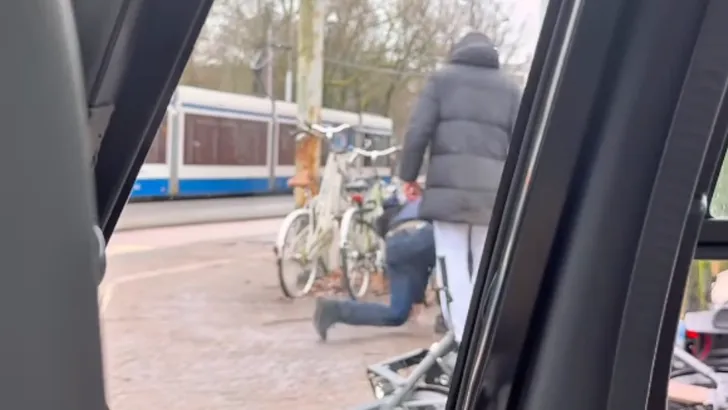 Op een Instagram-video van Dave Roelvink is te zien hoe hij samen met zijn vriendin in de auto jaagt op de fietsendief.